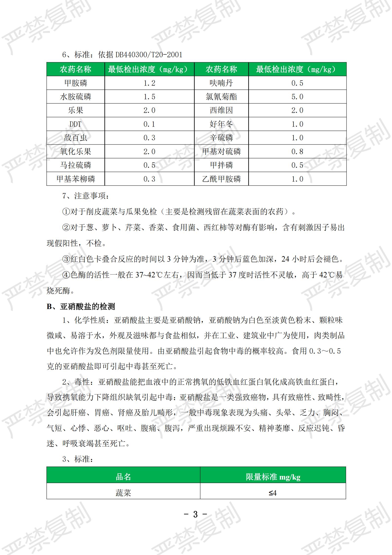 【1】食材安全检测流程:1、入库检测,2、出库检测,3、三级检测流程监控;【2】食品检测监管方案